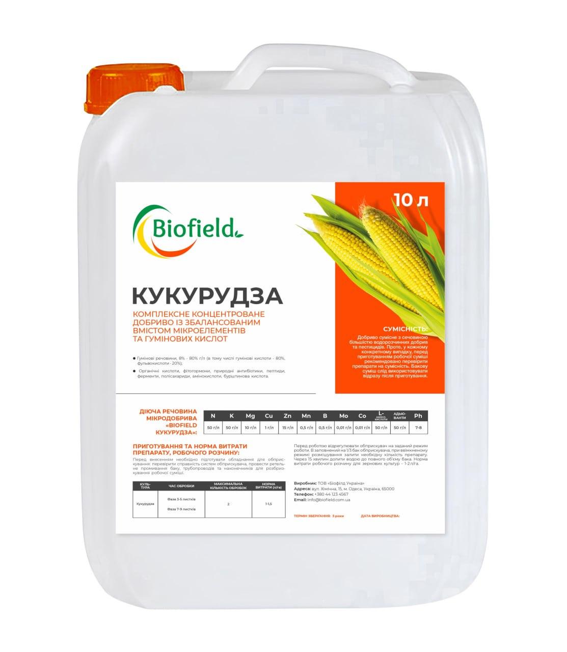 Biofield Кукурудза — рідке комплексне мікродобриво для підвищення врожайності кукурудзи на 10–20%