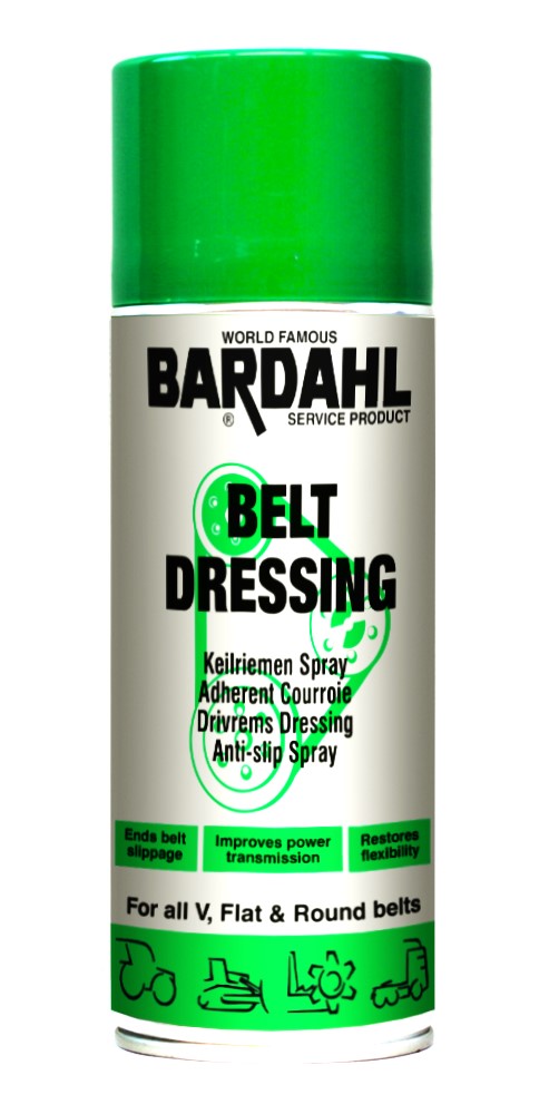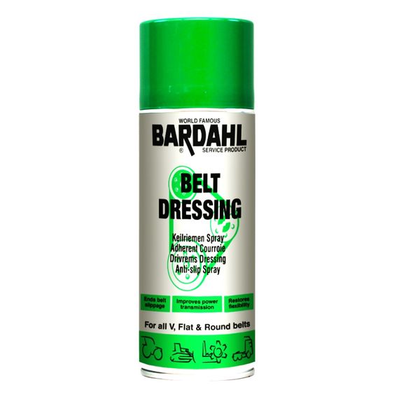 BARDAHL BELT DRESSING розроблене лабораторією Bardahl спеціально для запобігання прослизання приводних ременів усіх форм і типів (трапецієподібних, плоских, круглих, гумових, шкіряних, текстильних, синтетичних).
