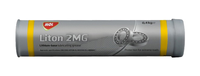 MOL Liton 2MG - це універсальне консистентне мастило, виготовлене з високоочищеного мінерального базового масла та загусника на основі 12-гідроксистеарату літію. Містить протизносні, антиокисні, антикорозійні, протизадирні (ЕР) присадки, що забезпечують відповідний експлуатаційний рівень. Продукт містить дисульфід молібдену та графіт у якості твердих присадок, які допомагають збільшити допустиме навантаження на змащені деталі. Має помірно м'яку консистенцію, гладеньку структуру, чорне забарвлення. Діапазон робочих температур від - 25 °C до +140 °C.