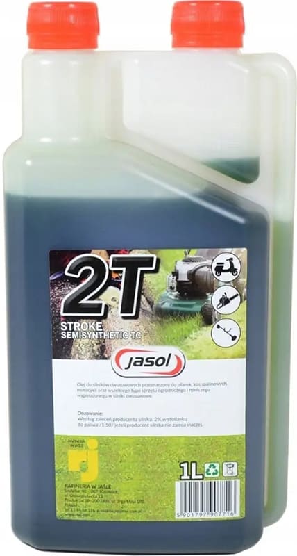 Напівсинтетична олива зеленого кольору, розроблена спеціально для двотактних двигунів мототехніки, садової та ручної техніки, таких як газонокосарки, тримери, бурі, бензопили, кущорізи, обприскувачі та багато інших. Продукт розроблений за спеціальною технологією, завдяки чому вдалося досягти надзвичайно низького рівня диму у вихлопних газах, що сприяє більш високому рівню комфорту під час роботи. Основою оливи JASOL 2T SEMISYNTHETHIC TC GREEN є суміш високостабільних синтетичних і ретельно очищених від сторонніх домішок мінеральних базових компонентів, які в сукупності забезпечують дуже високий рівень властивостей при демократичній ціні. Олива добре поєднується з паливом до однорідності і гарантує повноцінне згоряння суміші без відкладання нагару або сажі на деталях двигуна або вихлопної системи.