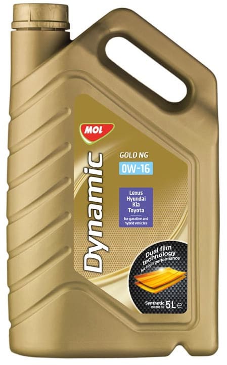 MOL Dynamic Gold NG 0W-16 - повністю синтетична моторна олива преміум класу. Ідеально підходить для використання в двигунах з високими технічними показниками, включно з багатоклапанними і високооборотними бензиновими і дизельними двигунами, як з турбонаддувом, так і без нього. Володіє відмінною в'язкісною стабільністю, в умовах високих робочих температур.