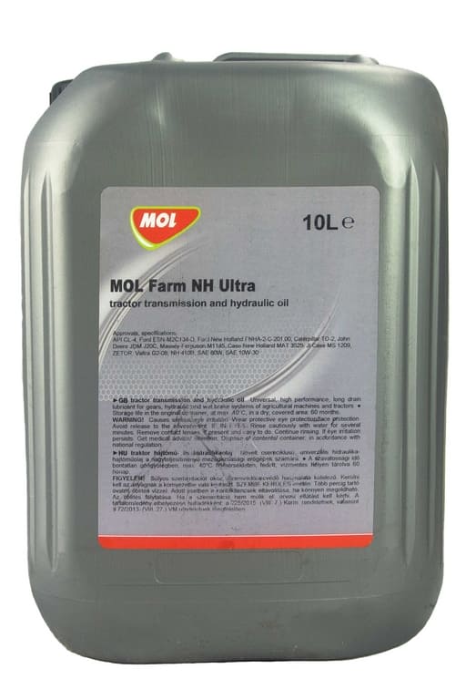 MOL Farm NH Ultra - гідравлічно-трансмісійна олива (UTTO) для тракторів виробництва Case New Holland Group. Володіє довгим інтервалом заміни може використовуватися для змащування зубчастих передач, гідротрансформаторів, диференціалів, мокрих гальм та гідравлічних систем сільськогосподарської техніки.