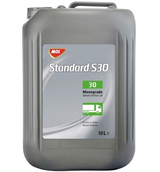 MOL Standard S 30 - сезонна моторна олива для важконавантажених дизельних двигунів, які працюють у жорстких умовах експлуатації. Рекомендується для дизельних безнаддувних двигунів низької та середньої продуктивності.