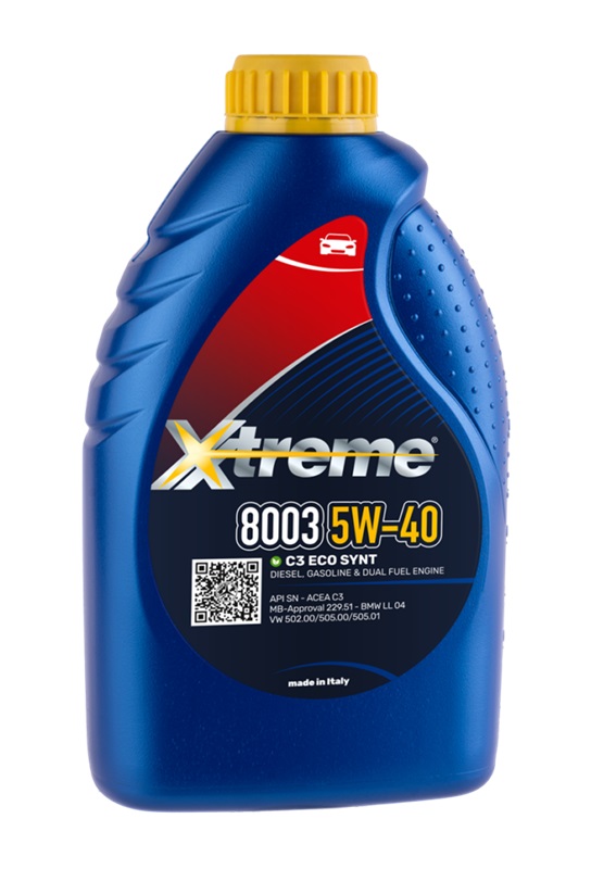Xtreme 8003 C3 ECO SYNT SAE 5W-40 - це синтетичний мастильний матеріал останнього покоління, що складається з ретельно підібраних базових олив і присадок, розроблена для забезпечення відмінних експлуатаційних характеристик сучасних бензинових і дизельних двигунів з турбонаддувом та без навіть у важких умовах експлуатації. Повністю сумісна з усіма пристроями захисту від забруднення (наприклад, DPF - фільтр сажі) і перевершує основні вимоги до експлуатаційних характеристик, що пред'являються виробниками оригінального обладнання.
