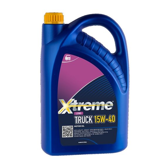 Xtreme LONG TRUCK 15W-40 - це олива останнього покоління SHPDO (Super High Performance Diesel Oil) всесезонний мастильний матеріал, виготовлений на основі ретельно підібраних базових олив і присадок й розроблений для того, щоб гарантувати видатні експлуатаційні характеристики в сучасних безнаддувних і турбованих дизельних двигунах вантажних автомобілів, навіть у важких умовах експлуатації. Вона повністю сумісна з усіма пристроями захисту від забруднення і перевершує основні вимоги до експлуатаційних характеристик, що пред'являються OEM-виробниками.