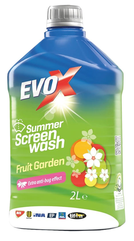 EVOX Summer Fruit Garden - це прозора екологічно безпечна рідина з ягідним ароматом. Застосовується для очищення скляних та полікарбонатних поверхонь. Містить присадку, що покращує очищуючі властивості.
