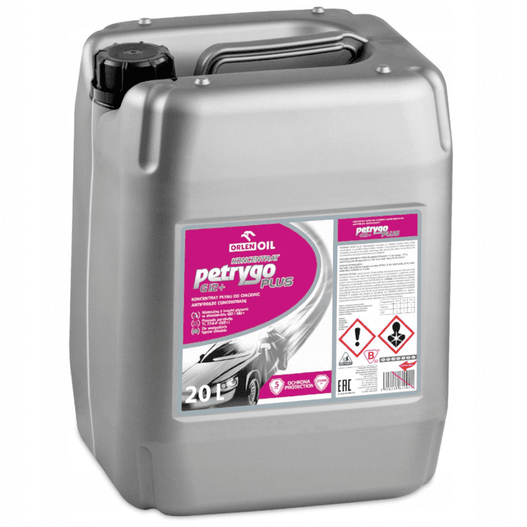 Petrygo PLUS G12 + у вигляді концентрату - рідина нового покоління для автомобільних радіаторів, заснована на технології органічних кислот Organic Acid Technology OAT. Містить активні мікрочастинки інгібіторів корозії, що осідають на внутрішніх стінках системи охолодження і працюють безперервно. Рідина захищає від утворення осередків корозії і кавітації при експлуатації 5 років або при пробігу до 250 тисяч км. Завдяки можливості будь-якого розведення водою, концентрат забезпечує підбір температури кристалізації відповідно до потреби. Оптимізована технологія гарантує високу стабільність рідини при тривалому зберіганні (до 5 років) і в процесі використання. Змішується з іншими охолоджуючими рідинами стандарту G12 з еквівалентними параметрами.