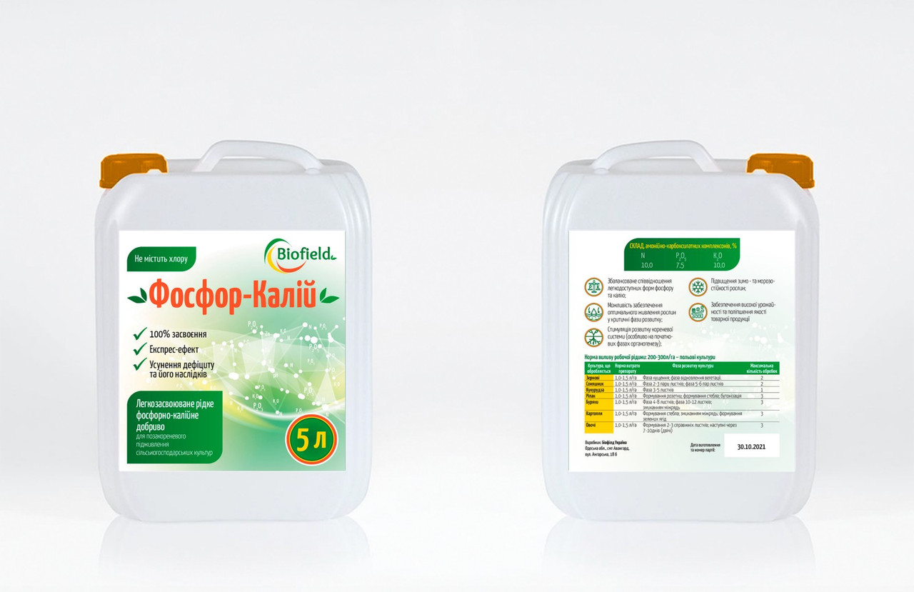 Biofield Фосфор-Калій — збалансоване NPK-мікродобриво для позакореневого підживлення
