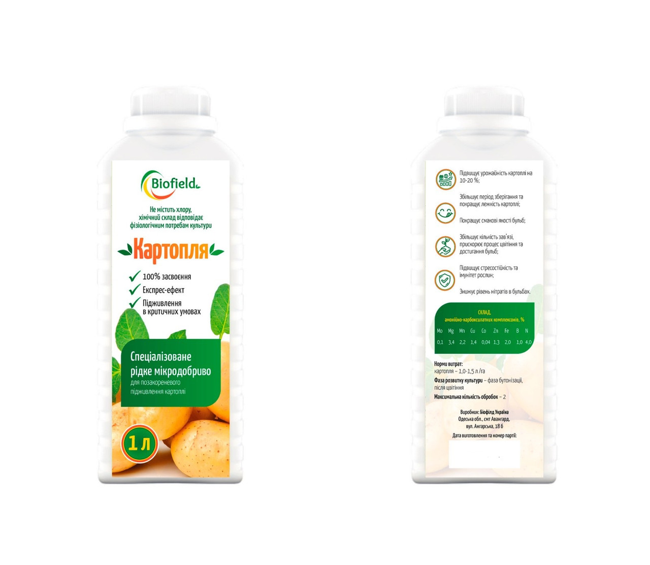 Мікродобриво для картоплі Biofield — безхлорний комплекс із бором та магнієм (1 л)