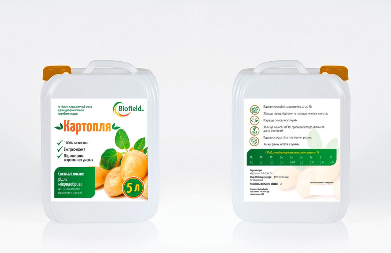 Biofield Картопля — безхлорне мікродобриво для підвищення врожайності на 10–20%