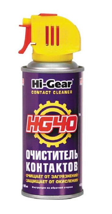 Hi-Gear Contact Cleaner – эффективно очищает электрические контакты, электронные элементы и разъемы от жировой и оксидной пленок, пыли и других изолирующих загрязнений.