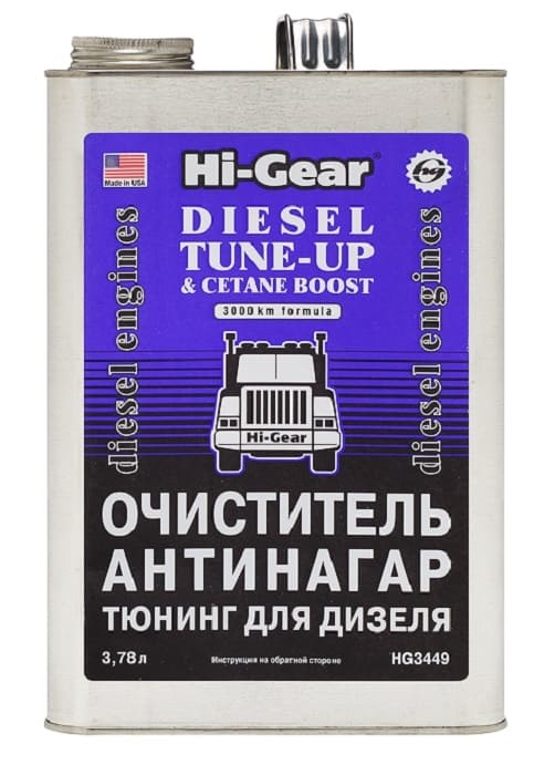 Hi-Gear Diesel Tune Up – это современная концентрированная формула, сочетающая мощный очиститель и функциональную примесь, повышающую качество дизтоплива. Предназначен для дизельных двигателей. Эффективно очищает распылители форсунок, камеру сгорания, клапаны и днища поршней от нагара, повышает октановое число топлива на 6 единиц.