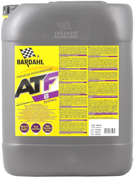 Высококачественное синтетическое трансмиссионное масло с высоким индексом вязкости. Это масло подходит для автоматических трансмиссий и коробок передач, систем гидроусилителя руля, гидротрансформаторов и других специальных гидравлических систем. BARDAHL ATF 6 обладает очень хорошей стабильностью и текучестью при низких температурах. Идеально подходит для прохладного запуска. BARDAHL ATF 6 можно использовать там, где требуется жидкость ATF, превышающая ATF II и III. Удлиненный срок службы.