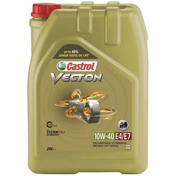 Castrol VECTON 10W-40 E4/E7 - моторное масло с синтетическими компонентами для дизельных двигателей коммерческого транспорта, созданное с использованием передовых технологий производства смазочных материалов, специально разработанное для обеспечения более длительного эффективного срока службы масла.
