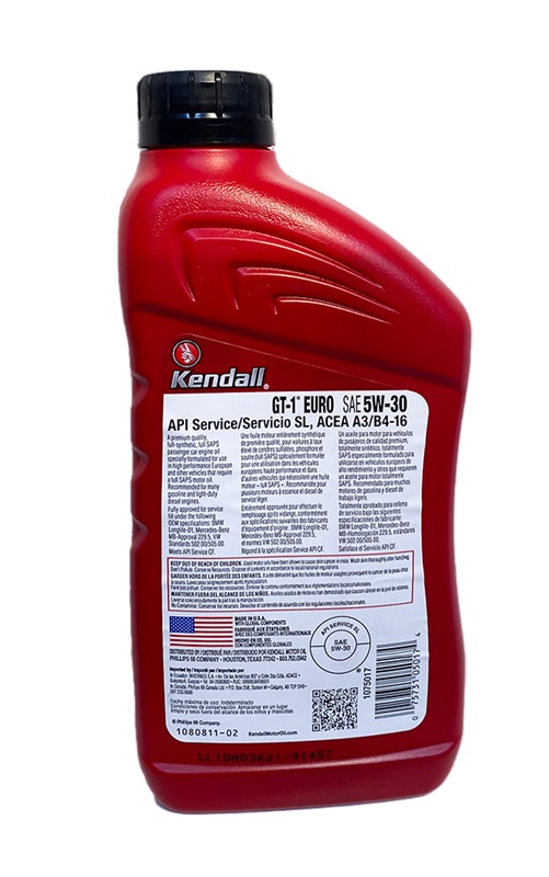 Kendall GT-1 Euro+ Motor Oil - это полностью синтетическое моторное масло премиум-класса с низким содержанием SAPS, разработанное для обеспечения максимальной защиты европейских легковых автомобилей при любых условиях эксплуатации. Он также рекомендован для других транспортных средств, работающих при экстремальных температурах или в тяжелых условиях вождения, например, для буксировки тяжелых грузов. Рекомендуется для использования во многих бензиновых и малотоннажных дизельных двигателях.