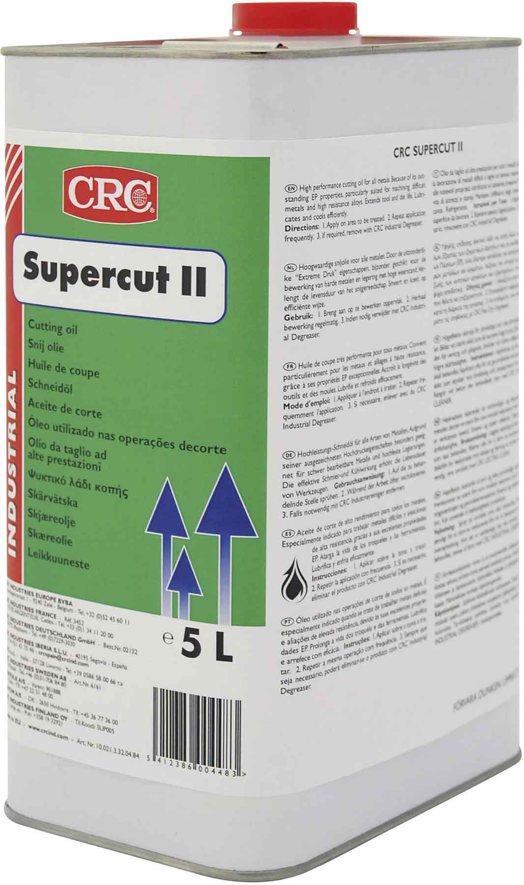 Высокоэффективная, не содержащая хлора смазочно-охлаждающая жидкость для резания. CRC Supercut – смесь очищенных базовых масел и синтетических присадок, разработанная в соответствии с самыми строгими требованиями, как для черных, так и для цветных металлов (нержавеющая сталь, алюминий, латунь, медь). Присутствующие присадки, формируют устойчивую пленку, которая может выдержать экстремальное давление, тем самым увеличивая срок службы инструмента и облегчая процесс резания.