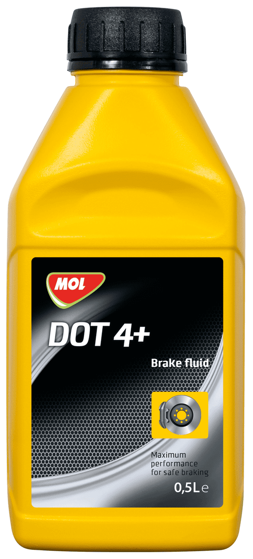 MOL DOT 4+ синтетическая тормозная жидкость на основе полигликоля и полигликолевого эфира. Содержит антиокислительные, антикоррозионные и противопенные присадки. Обладает отличной стойкостью к абсорбции влаги. Температура кипения "сухой" тормозной жидкости – не менее 260°C. Совместима со всеми синтетическими тормозными жидкостями, эксплуатационный уровень которых соответствует данной спецификации.