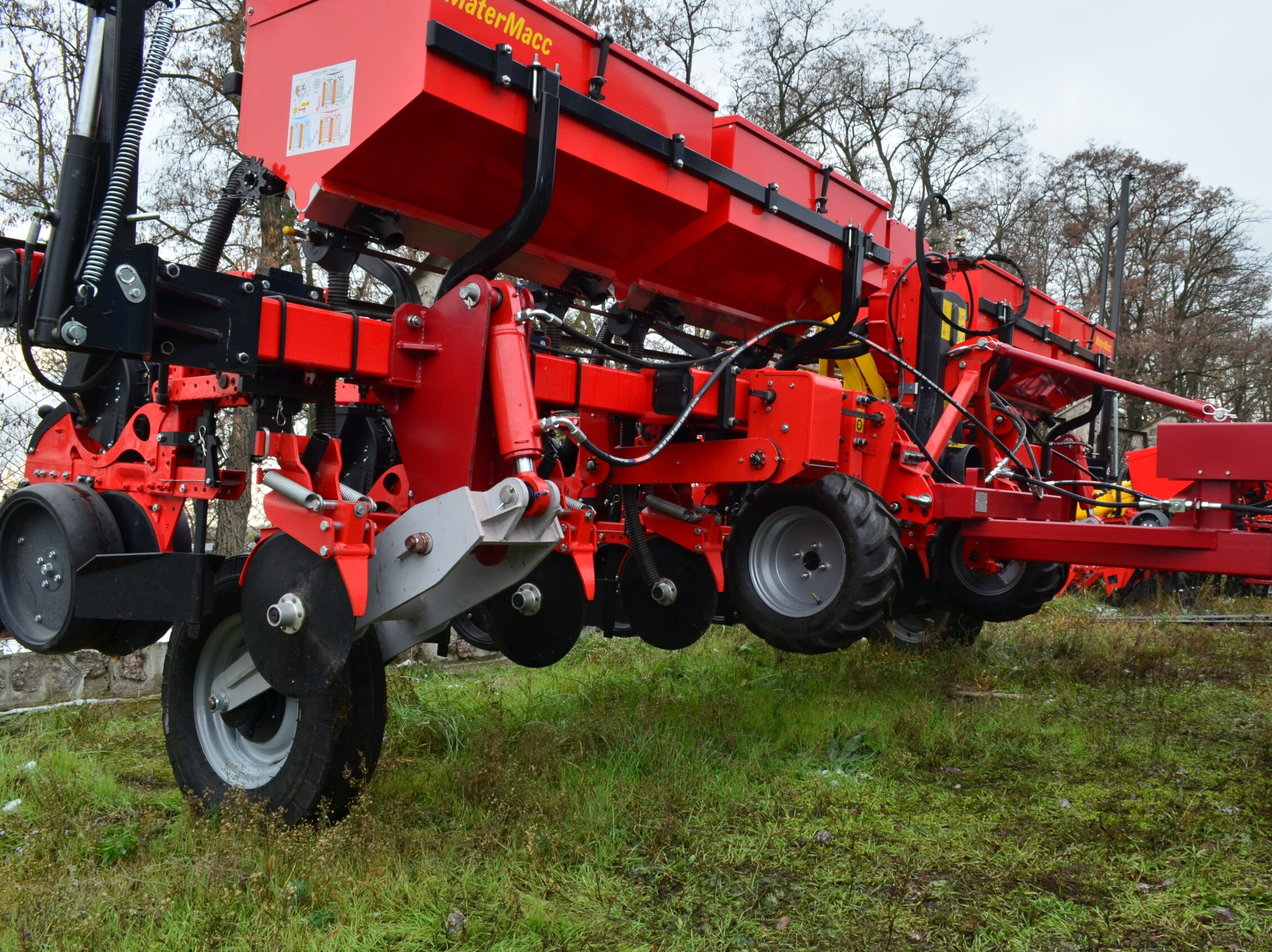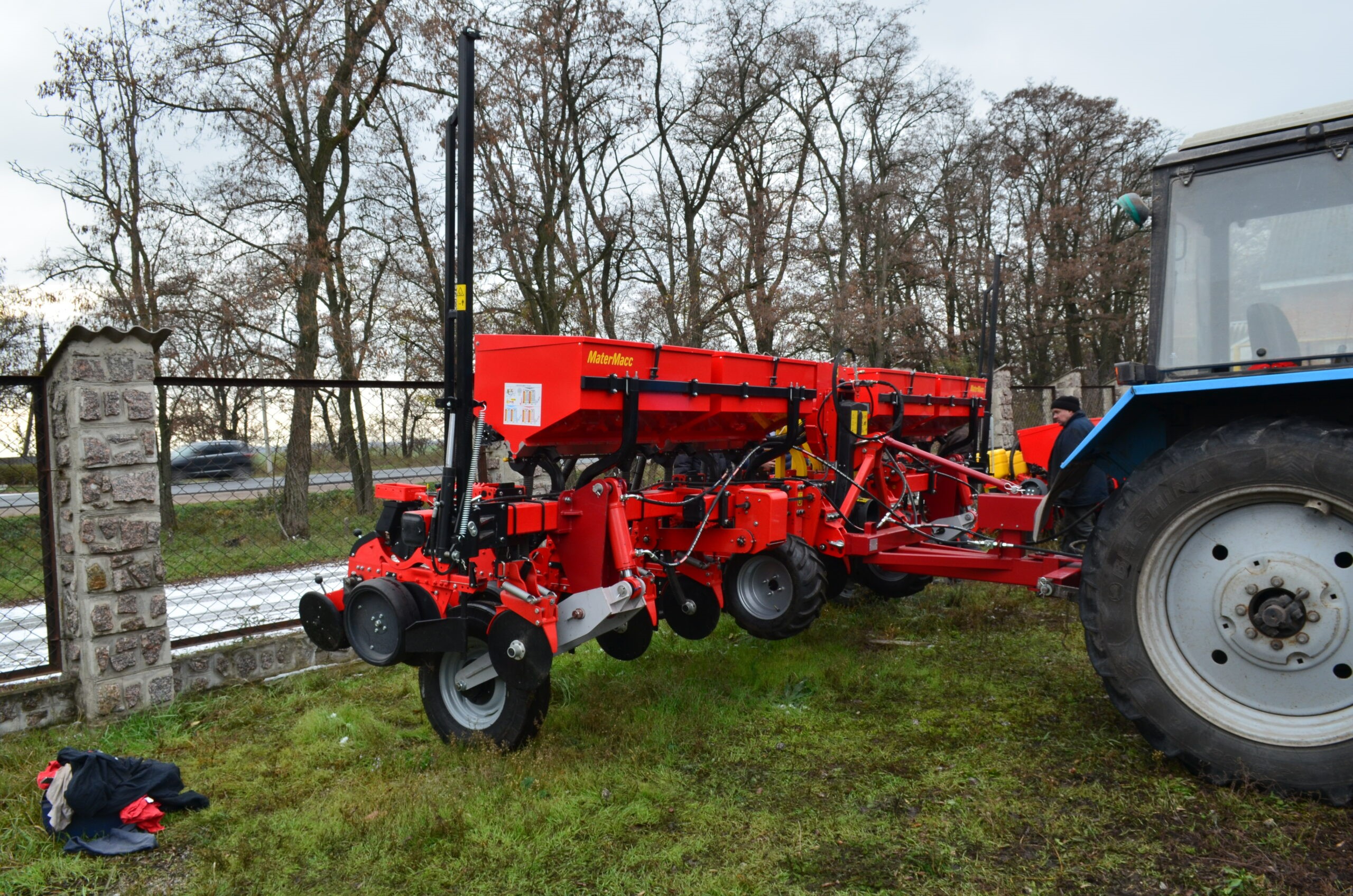 Транспортное устройство ПТС-9 используется для транспортировки импортных навесных пропашных сеялок MaterMacc MS 8100, которые агрегатируются с тракторами мощностью от 80 л.с между полями, а также по дорогам общего пользования.