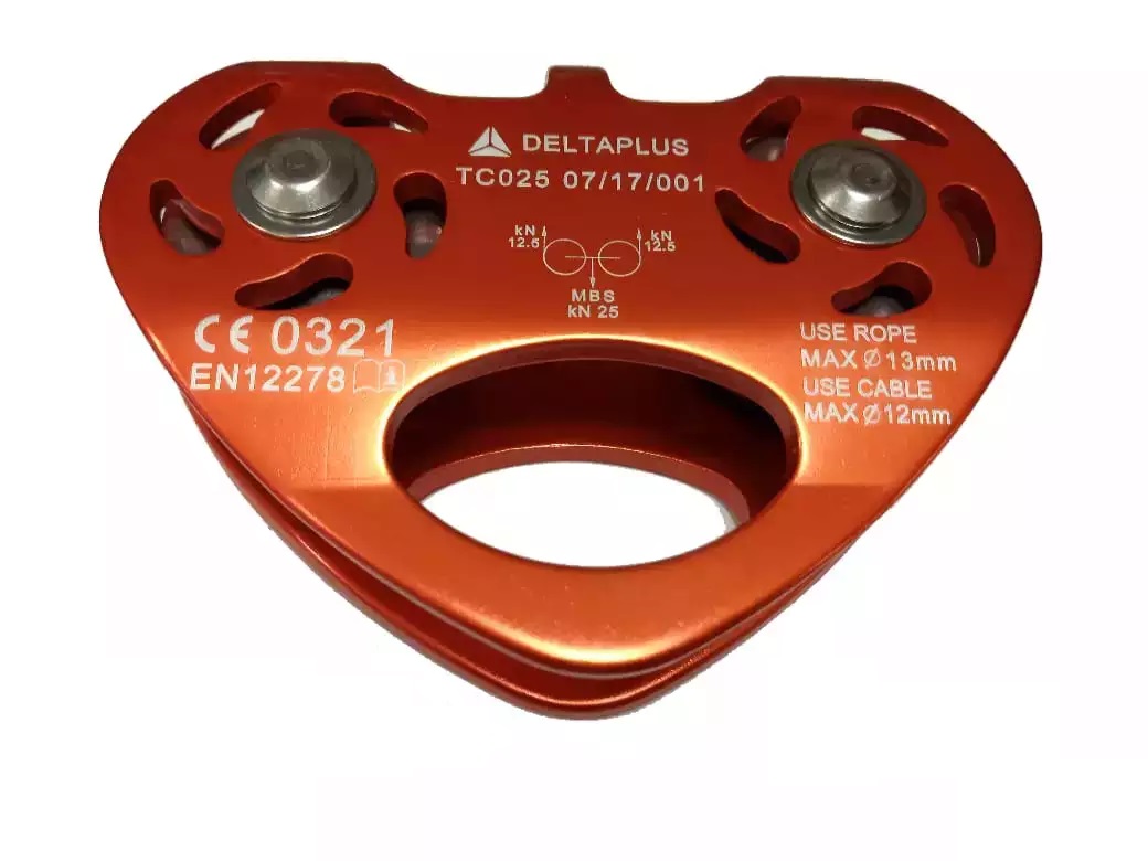 Двойной шкив из алюминиевого сплава на роликах для плетёного каната (менее 13 мм) и троса (менее ? 12 мм).
