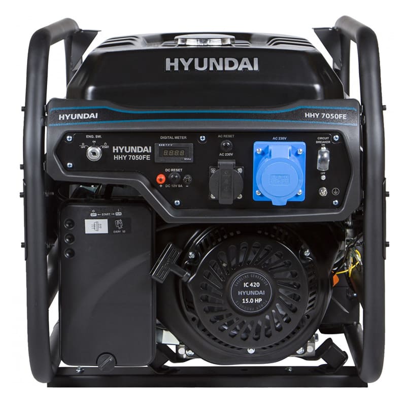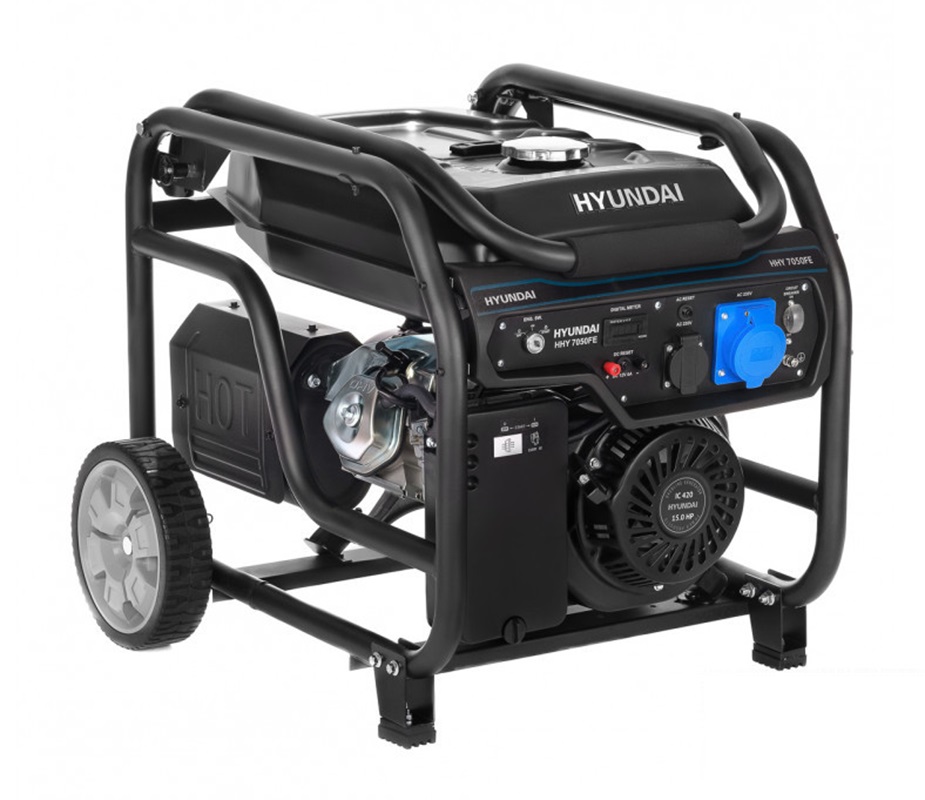 Бензиновый генератор HYUNDAI HHY 7050FЕ - надежный и функциональный дополнительный источник питания, который может быть использован на строительных площадках, в частных домах, ремонтных мастерских с целью бесперебойной работы электроприборов и инструментов.