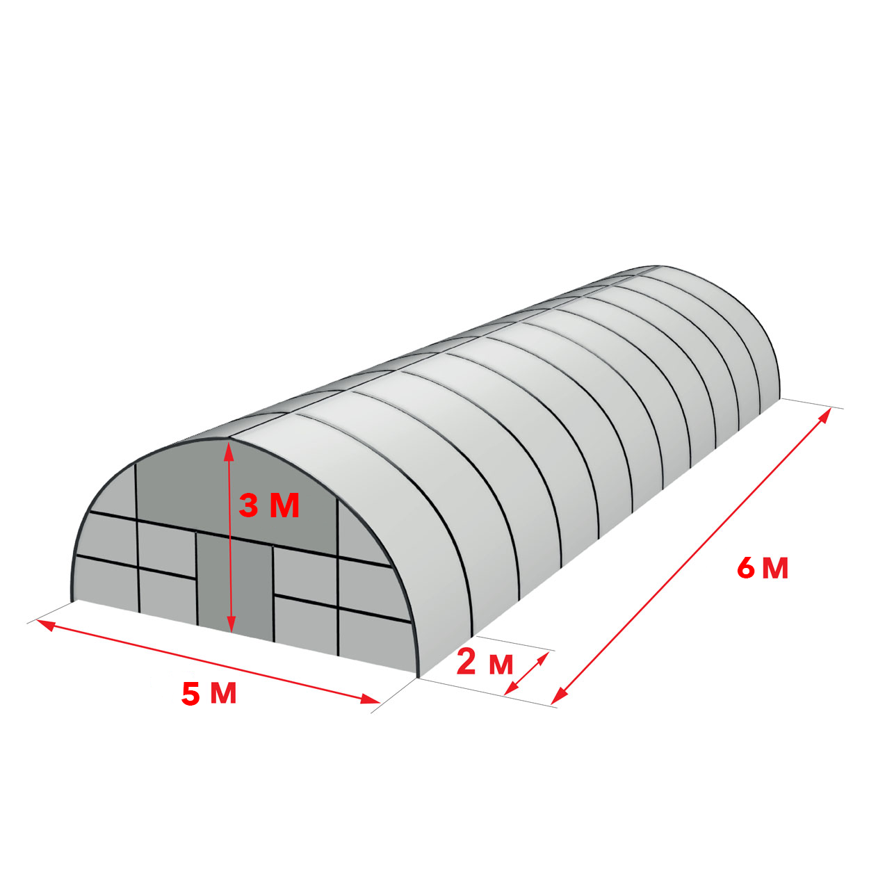 Теплиця 5×6 м із оцинкованої сталі — арочна конструкція з одинарною плівкою