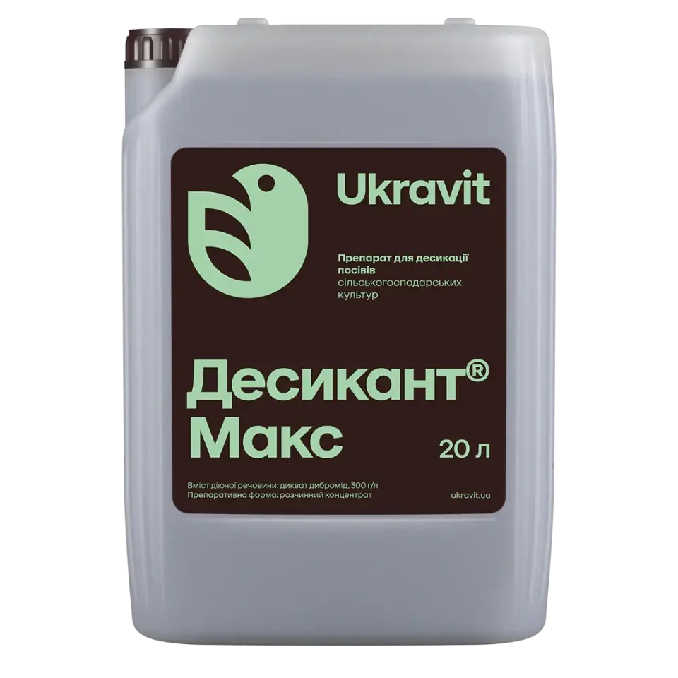 Десикант для передзбиральної обробки посівів. Прискорює дозрівання, рівномірно підсушує рослинну масу та полегшує механізоване збирання врожаю.