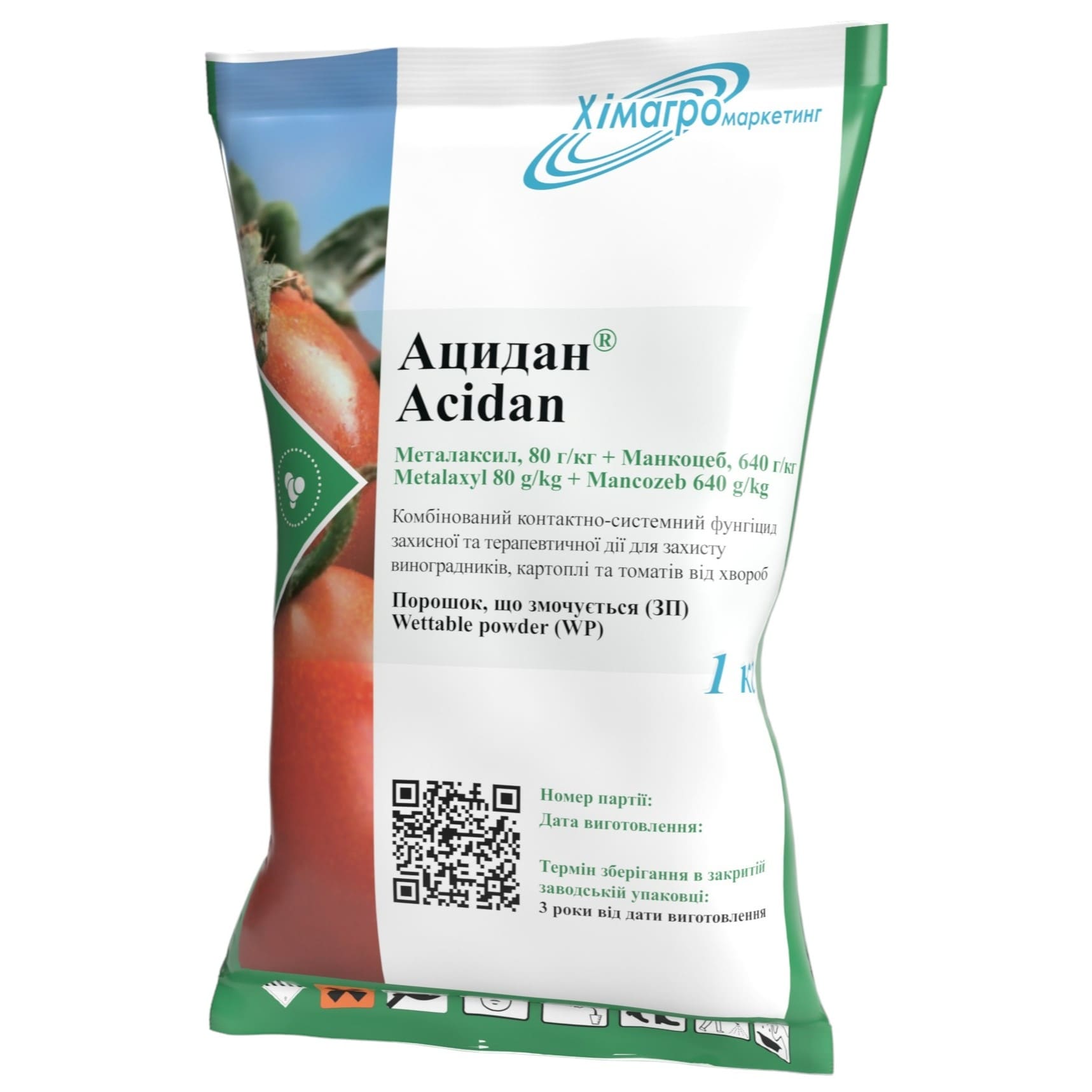 Контактно-системный фунгицид профилактического и терапевтического действия для защиты винограда, картофеля, помидоров, огурцов, лука и других сельскохозяйственных культур от возбудителей ложной мучнистой росы (мильдью на винограде), фитофтороза, пероноспороза, альтернариоза и других.
