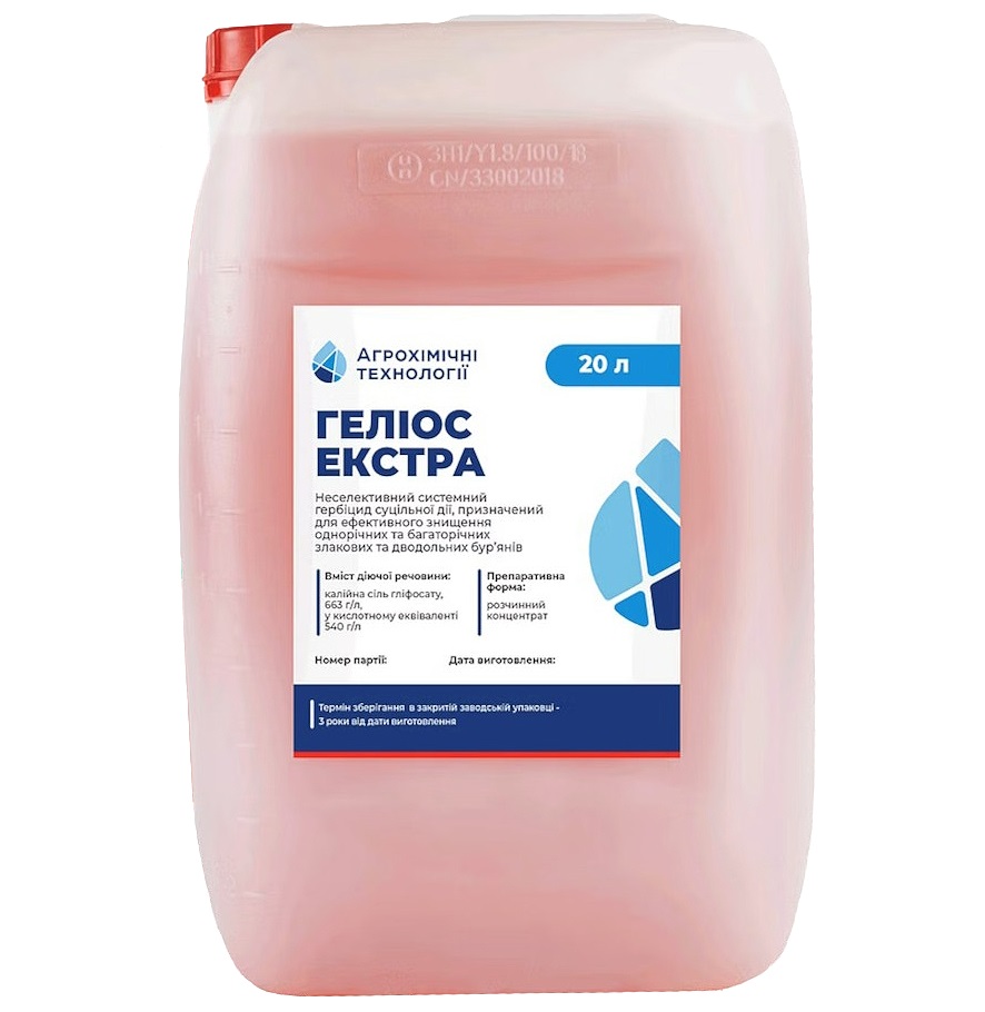 Механизм действия: попадая на растение, Гелиос Экстра движется к точкам роста и блокирует синтез аминокислот в клетках, в результате чего происходит отмирание растений, в том числе их корневой системы.