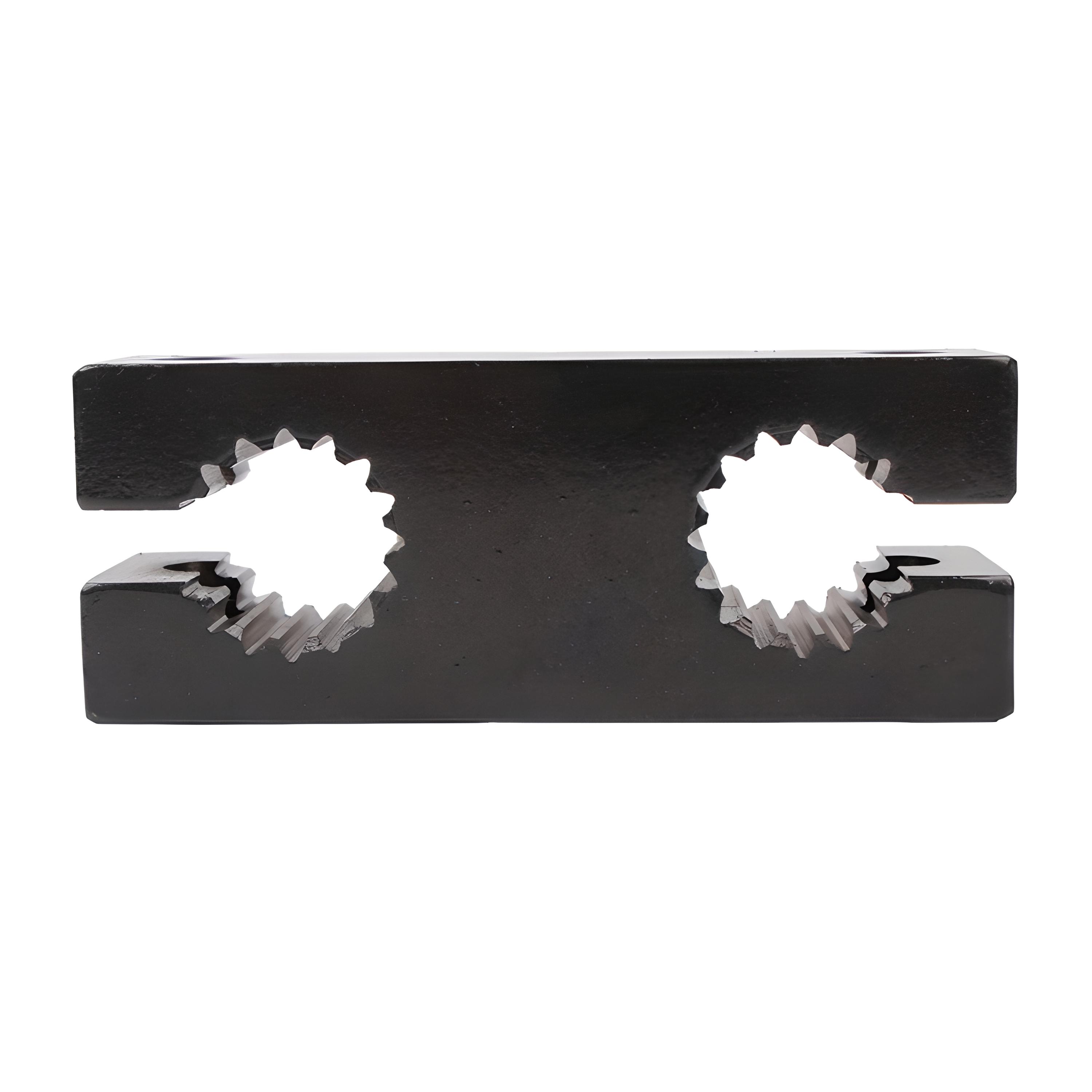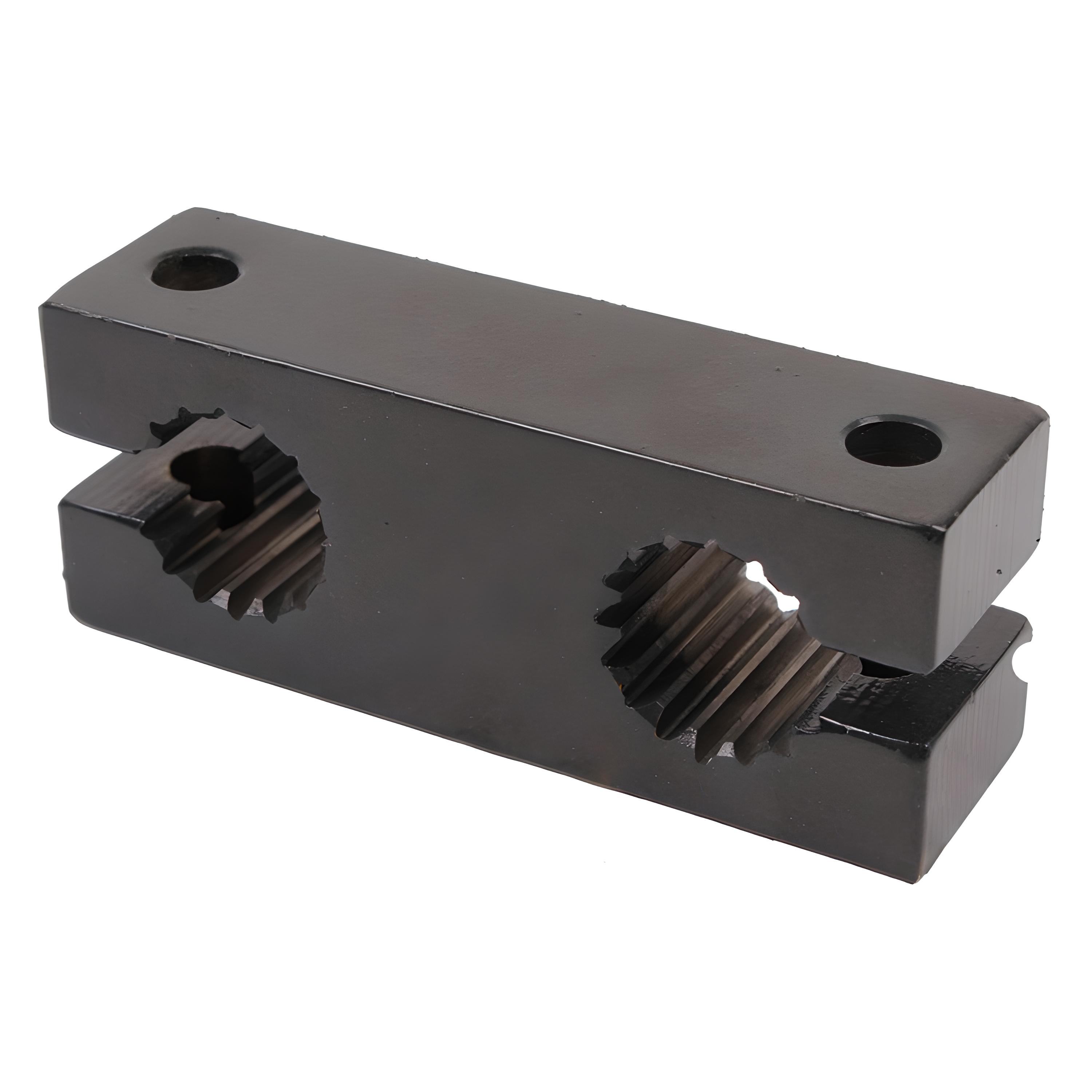 Стальное изделие в виде призматического бруска с крепежными отверстиями на одной из плоскостей и шлицевыми отверстиями под хвостовики валов на другой. Поверхность детали для предотвращения атмосферных воздействий окрашена.