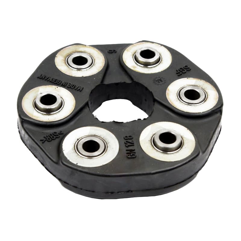 Сложная литая резиновая деталь с внутренними закладными металлическими крепежными втулками. Валы подсоединяются с противоположных сторон с поочередным порядком крепления.