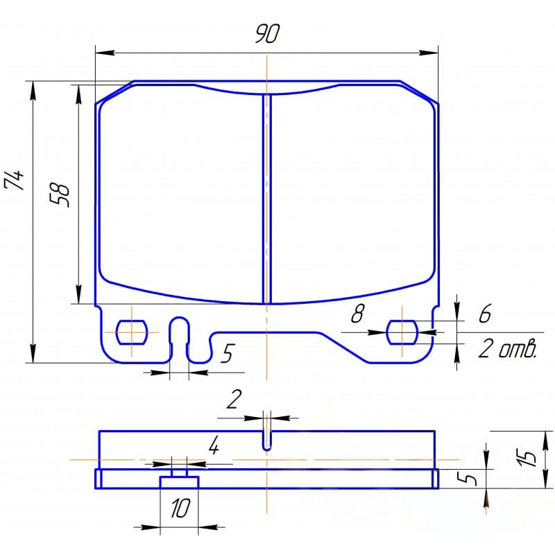 Изделие сложной пространственной формы с двумя отверстиями для крепления на колодку, изготовленное из специального материала с высоким коэффициентом трения.