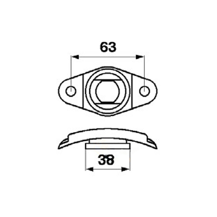 Присутствуют два отверстия для крепления и один центральный рабочий, в котором скользит палец.