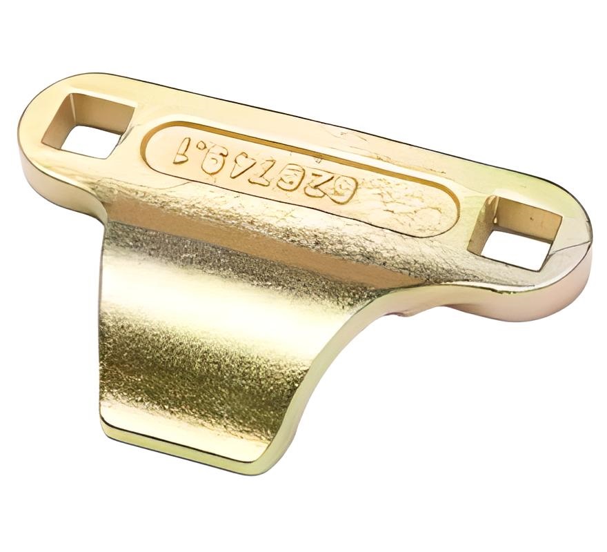 Литое (иногда гнутое) стальное изделие сложной пространственной формы с отверстиями для крепления к пальцевому брусу жатки.