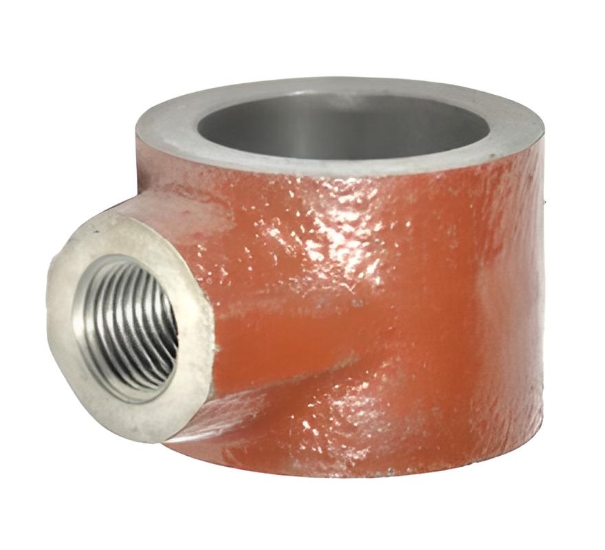 Изделие сложной пространственной формы в виде пустотелого тройника с резьбовым отверстием и закладными тефлоновыми втулками.