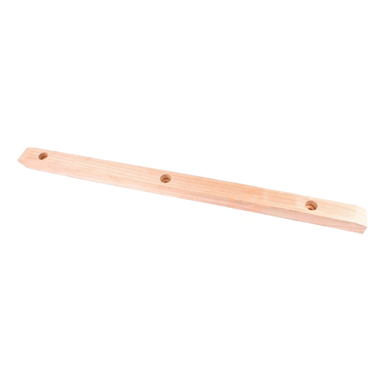 Деталь изготовлена из массива жестких пород древесины в виде длинной планки прямоугольного сечения с отверстиями для крепления.