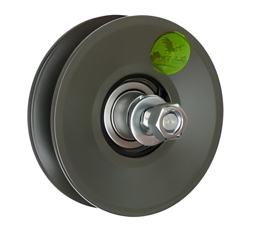 Деталь в виде металлического ролика соответствующих размеров и конфигурации, в центральной части которого закреплен подшипник с пальцем. На поверхность детали нанесено специальное покрытие, обеспечивающее максимальную прочность и износостойкость.