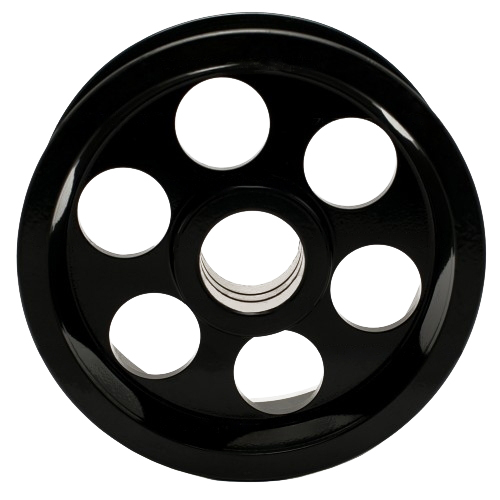 Изделие сложной пространственной формы с одной или несколькими клиновидными канавками на боковой поверхности (для установки ремней) и крепежными элементами в центральном отверстии.