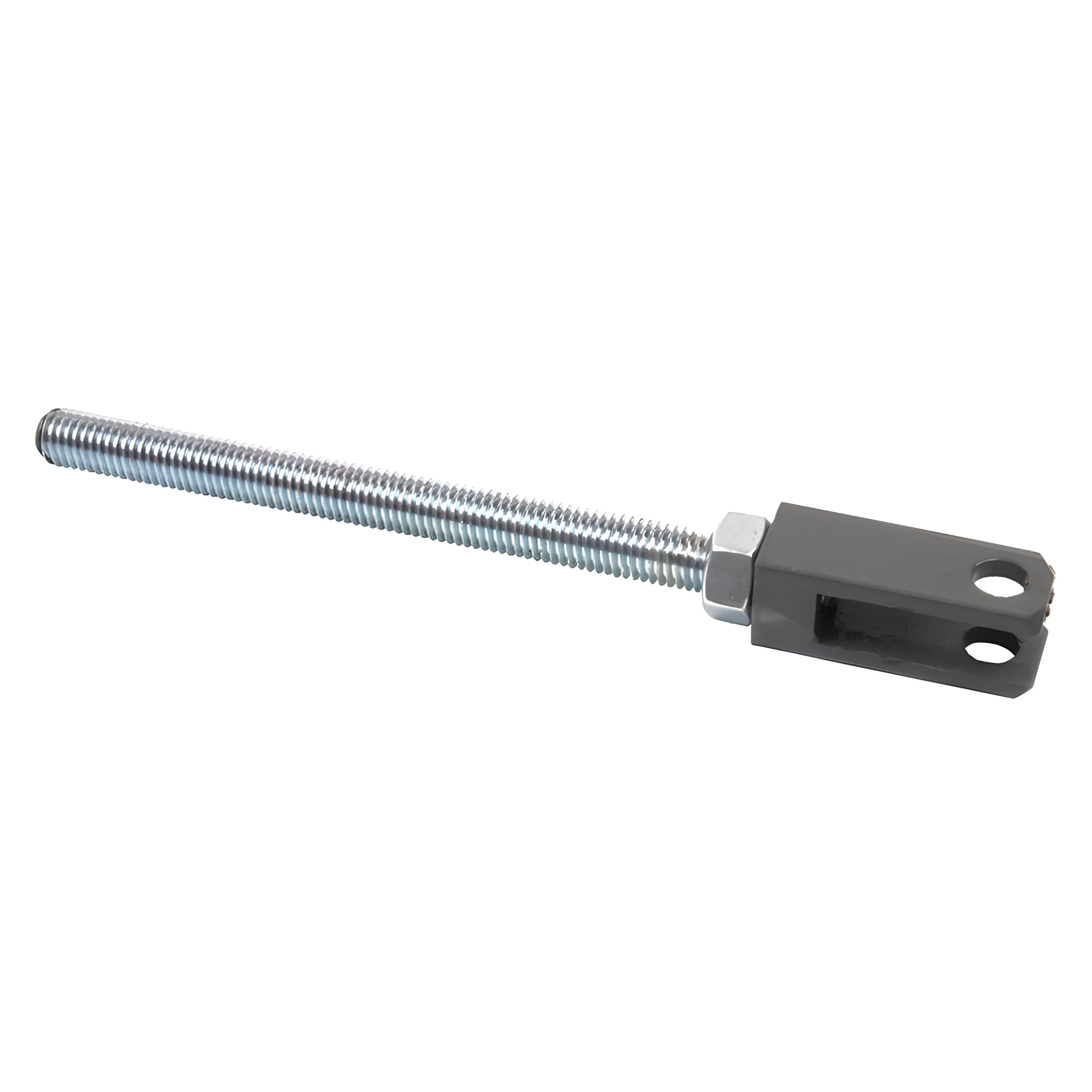 Металлическая деталь в виде вилки и резьбового стержня соответствующей формы и размеров, соединенных между собой. В вилке выполнены отверстия для соединения с механизмом натяжения. На лицевую поверхность нанесено специальное покрытие.