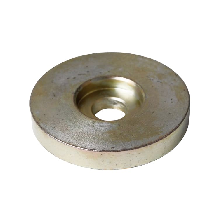 Точеная стальная деталь в виде ступенчатого цилиндра с центральным отверстием. Поверхность детали оцинкована.
