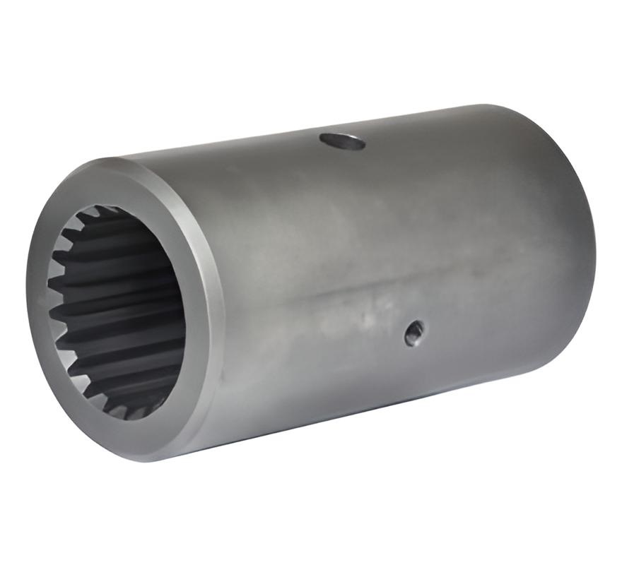 Изделие в виде пустотелого цилиндра с нарезанными в центральном отверстии шлицами и крепежными элементами на боковой поверхности. Деталь для обеспечения повышенной прочности и износостойкости термически обработана.