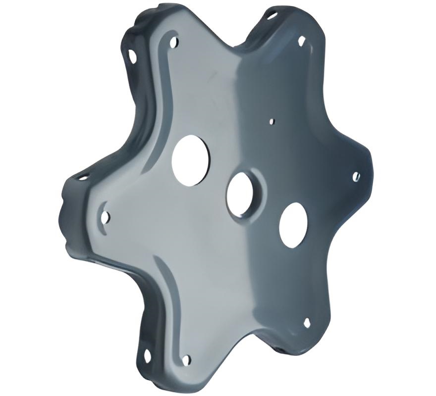 Стальное гнутое изделие сложной пространственной формы в виде звездочки с центральным отверстием и элементами крепления. На лицевую поверхность детали нанесено лакокрашенное покрытие.