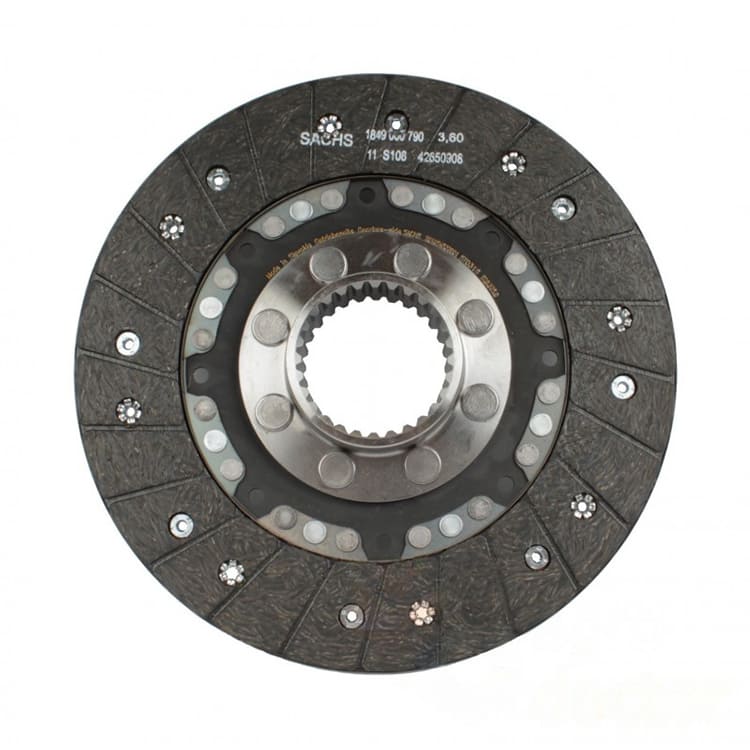 Сборочный узел, сочетающий в себе металлическую пластину в виде диска с установленными фрикционными накладками на поверхности и втулку со шлицами для установки на вал.