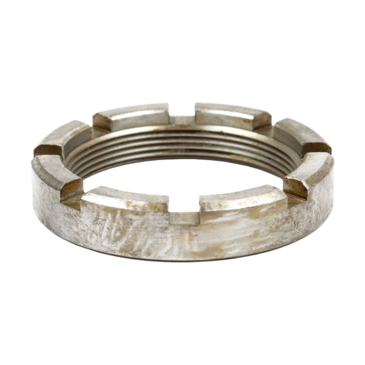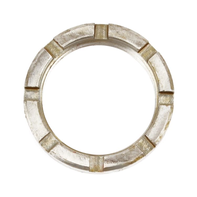 Стальная деталь в виде тора прямоугольного сечения со шлицами на торцевом этаже и резьбой в центральном отверстии.