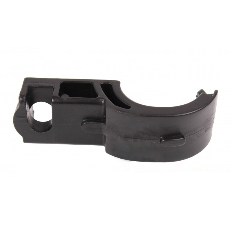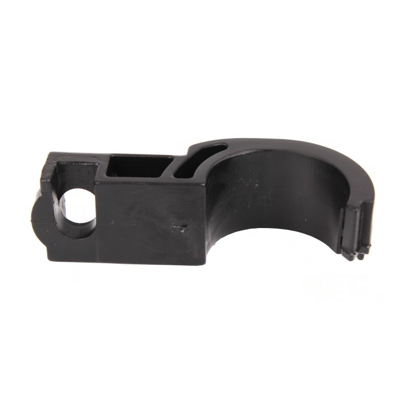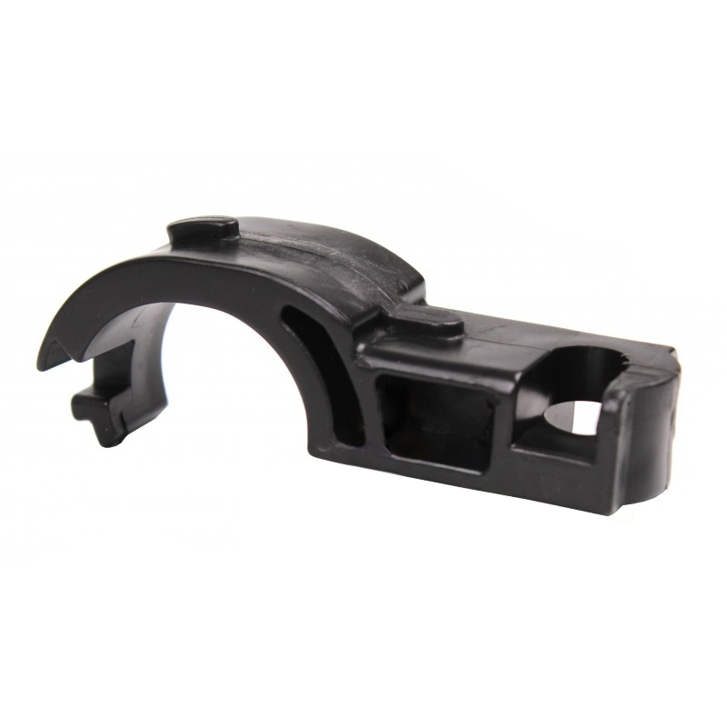 Пластиковая деталь сложной пространственной формы, состоящая из двух половин. Внутренняя часть полностью повторяет поверхность трубы, обеспечивая плотное прилегание при монтаже. Присутствуют отверстия для крепления.