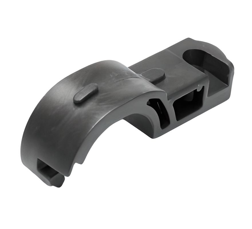 Деталь сложной пространственной формы, состоящей из двух половин. Внутренняя часть полностью повторяет поверхность трубы, обеспечивая плотное прилегание при монтаже. Присутствуют крепежные отверстия.