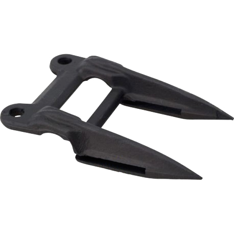 Кованая стальная деталь сложной пространственной формы в виде двузубая. У основания головки изготовлены 2 отверстия для крепления к пальцевому брусу.