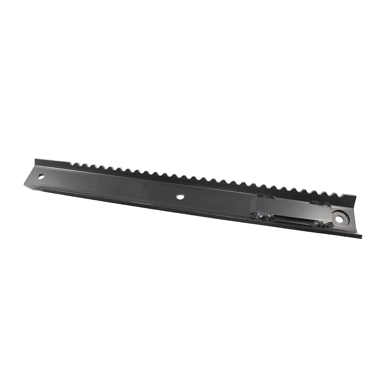 Длинная стальная п-образная форма деталь выполнена методом гибки. На основе просверлен ряд крепежных отверстий.