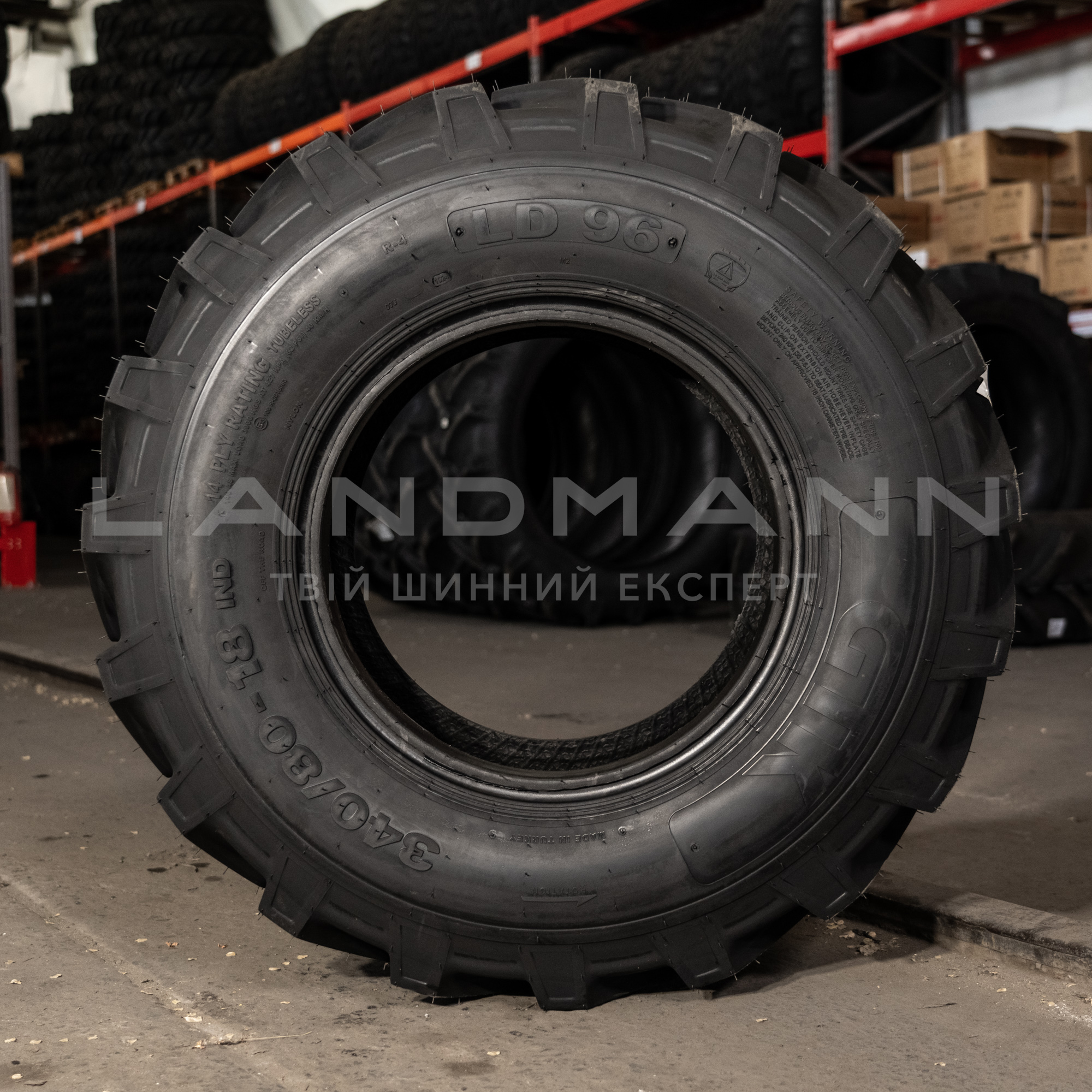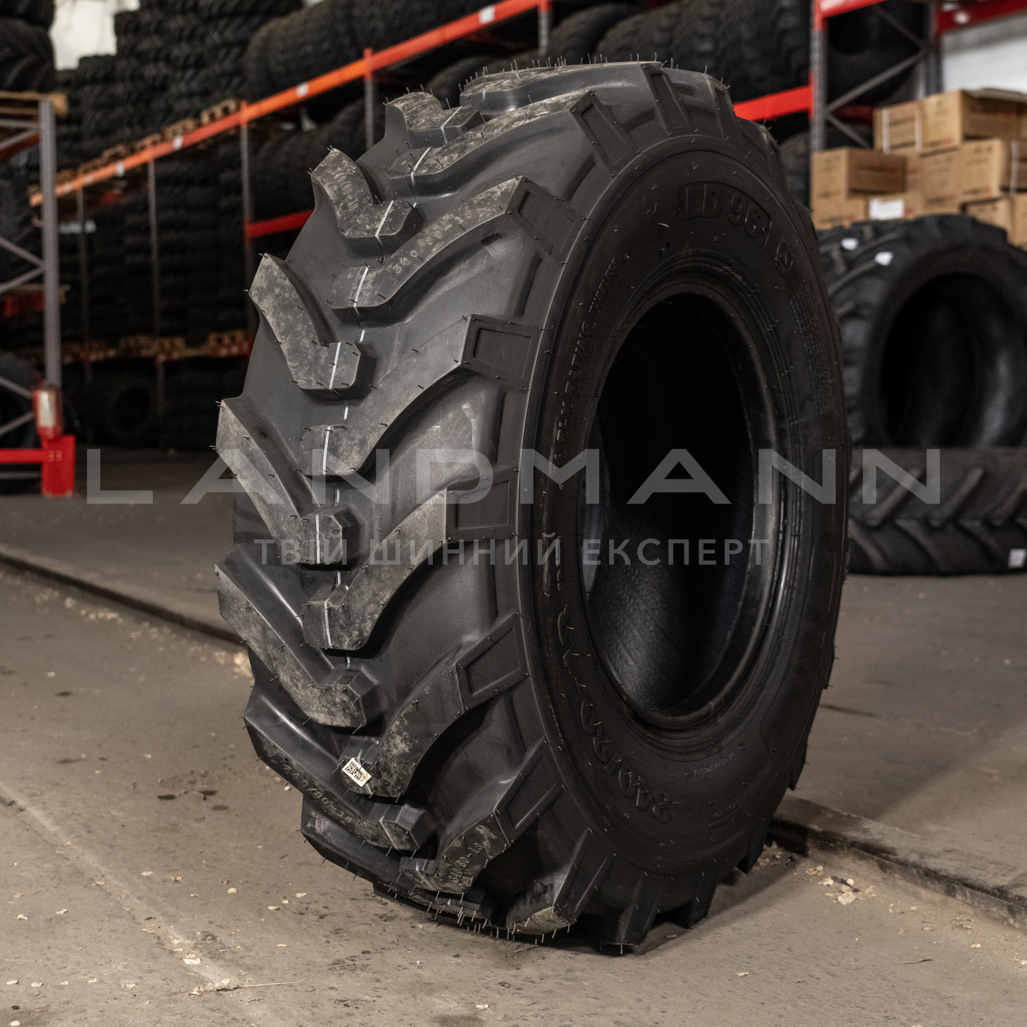 LD96 – промислова шина з посиленим каркасом. Має міцний індустріальний протектор з підвищеною стійкістю до проколів. Краще зчеплення з поверхнею завдяки широкому рисунку протектора в центральній частині грунтозацепа.