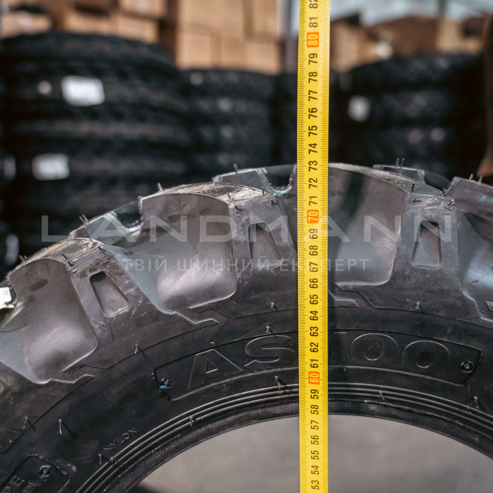 Тракторна шина AS100 забезпечує високе зчеплення з ґрунтом. Забезпечує легке пересування завдяки функції протидії коченню та запобігає утворенню скупчень грунту в центрі та на боковинах під час руху. Вона також полегшує відведення бруду завдяки своїм вікончастим блокам. Переваги: