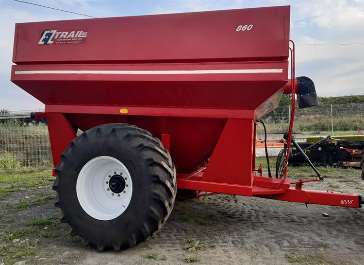ЕZ-Trail 860 (бункер-накопичувач перевантажувальний) з кузовом призначеним для транспортування зернових від комбайнів до автомобілів при збиранні врожаю, для посівних робіт, а також для добрив полів, перевезення кормів та інших сипучих матеріалів по ґрунту полів та ґрунтових доріг.